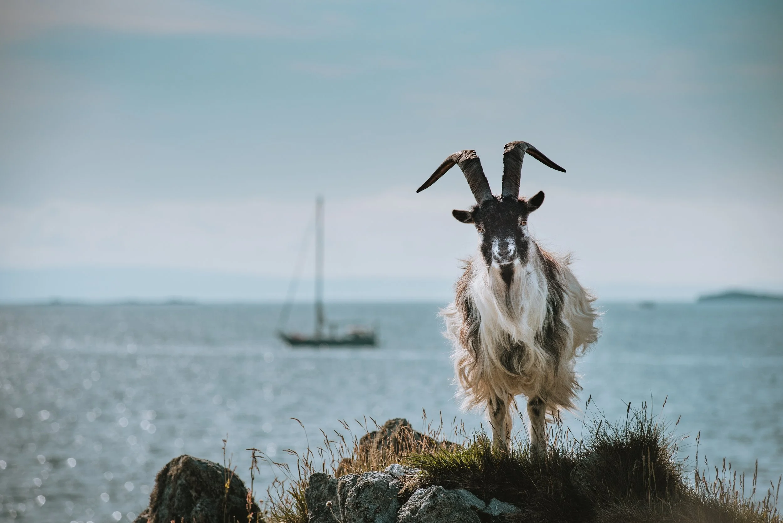 Wild goat near Carraig Fhada Lighthouse Port Ellen